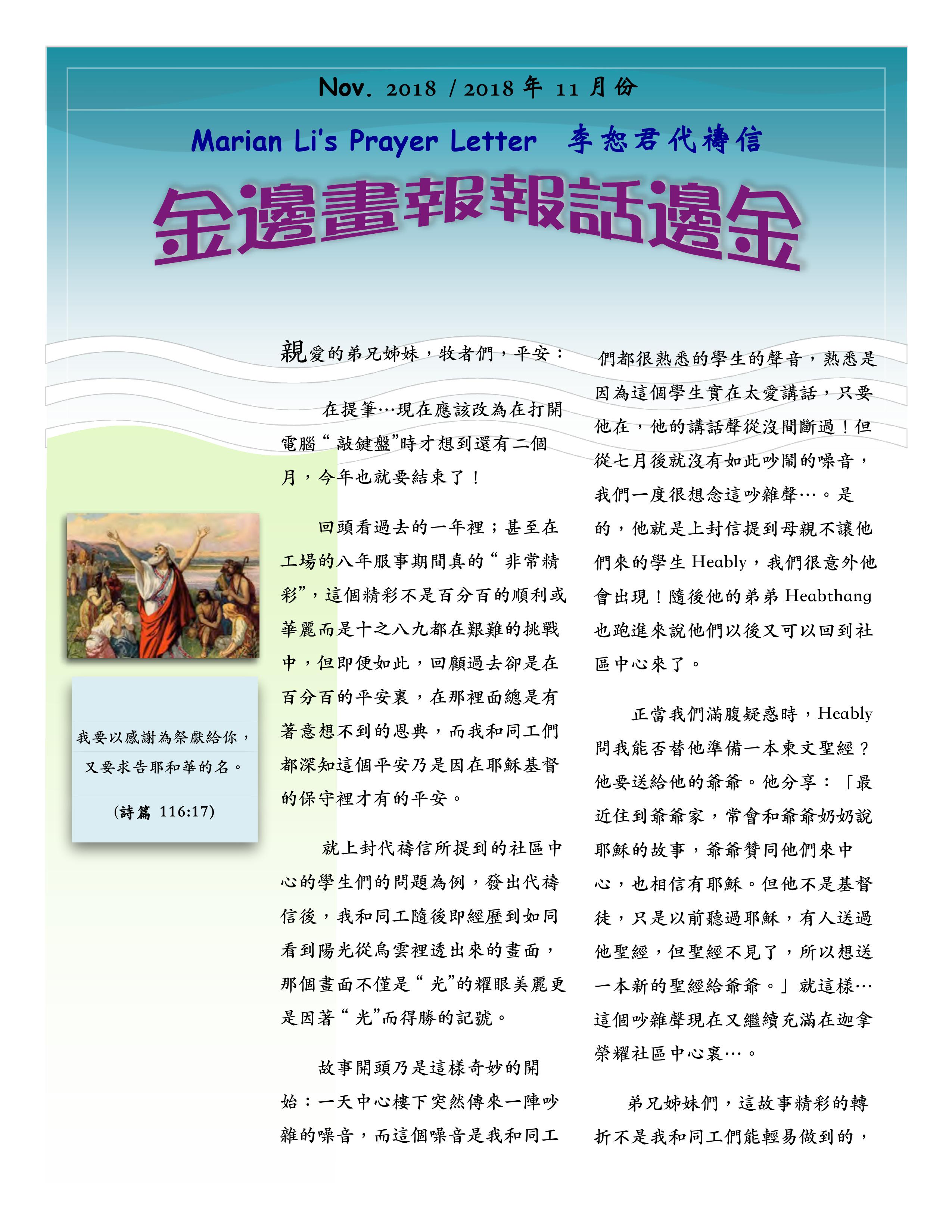 2018/11 李恕君宣教士