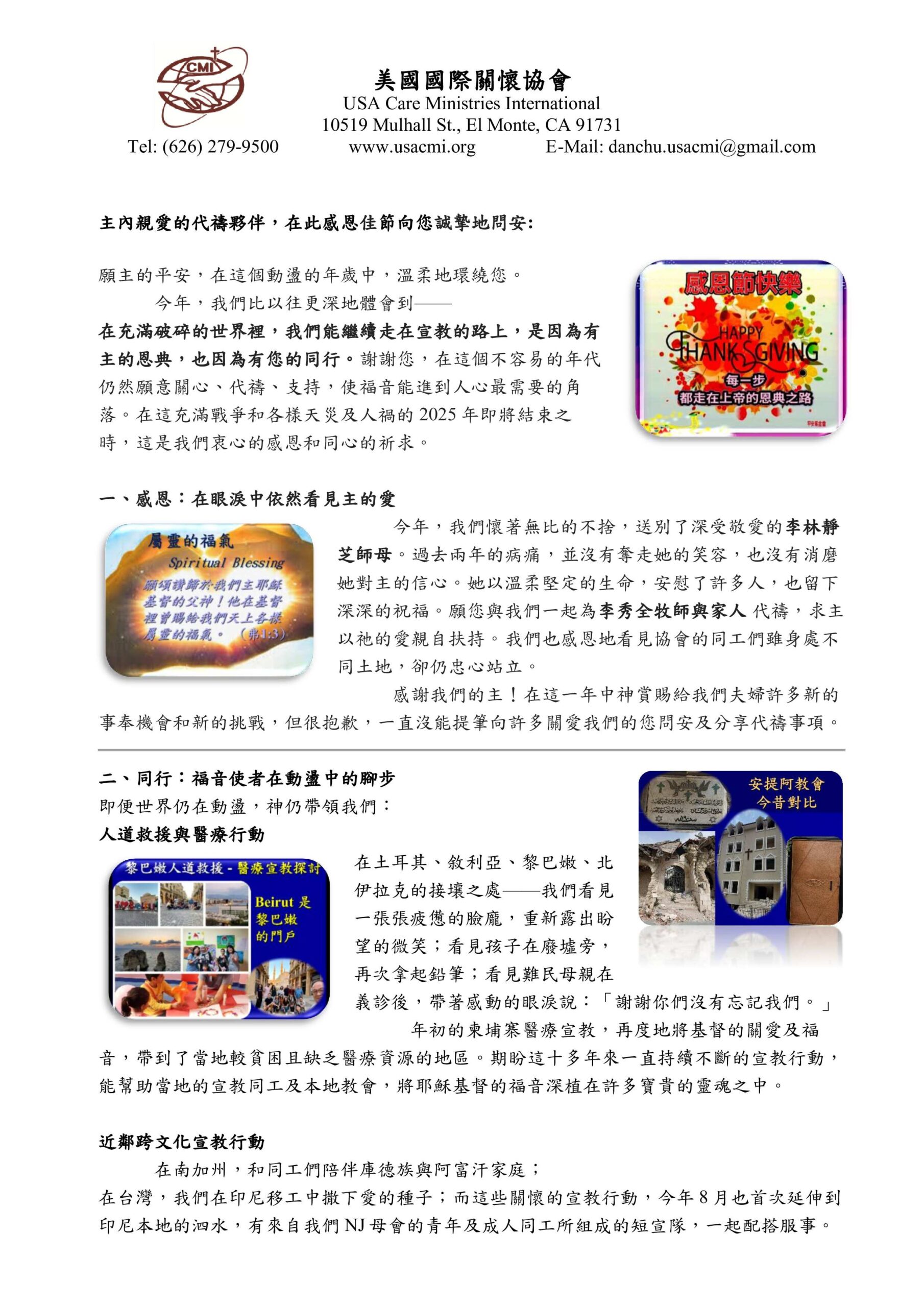 宣教關懷通訊