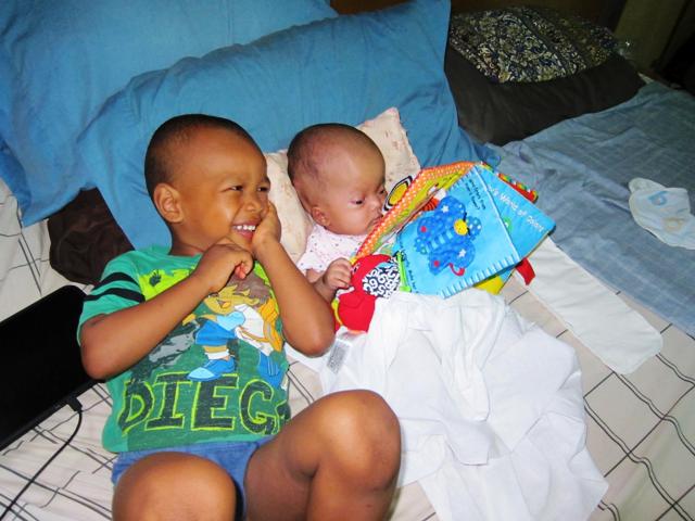 凱萍和孩子們,兩個男孩非常活潑,安安正學著做個好哥哥呢!