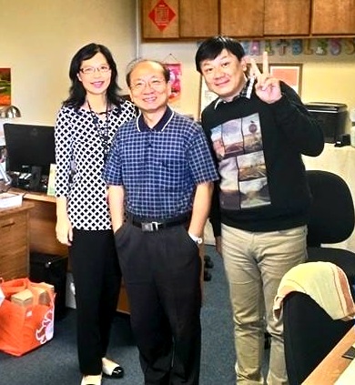 台灣總幹事劉智欽牧師與美國辦公室主任佘師母佳音及鉅平〈來家裡救助自珍的兩位同工〉
