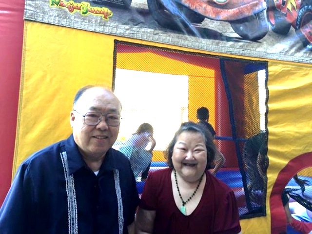 公公婆婆也湊熱鬧在party的跳床邊留影