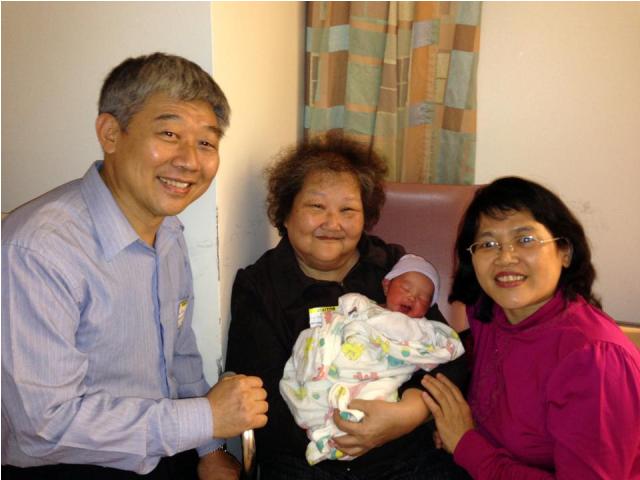 江明秀牧師師母趕到跟我們一起迎孫!